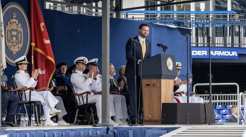 جیدی ونس، معاون رئیسجمهور آمریکا، روز جمعه ۲ خرداد در مراسم پایان تحصیل افسران و تفنگداران نیروی دریایی آمریکا شرکت و سخنرانی کرد. او در این سخنرانی خطوط اصلی سیاستهای نظامی جدید آمریکا و «دوران جدیدی در استراتژی نظامی» آمریکا را ترسیم کرد که در واقع بازگشت به سیاستهای استعماری کهن و کشورگشایی و توسعهطلبی امپریالیستی است. در مرکز این سیاست جدید هم مقابله با جمهوری خلق چین قرار دارد که «دشمن اصلی» خوانده میشود. آنچه در ادامه میخواهید برداشت بن نورتون، گردانندهٔ کانال یوتیوبی «گزارش اقتصاد ژئوپلیتیک» و مروری است بر بخشهایی از صحبتهای معاون رئیسجمهور آمریکا که در آن سیاستهای تهاجمی جدید آمریکا در عرصهٔ نظامی در «دورهٔ جدید و خطرناک» ترسیم شده است. م.آ.
