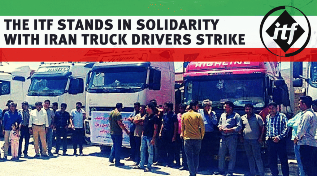 عکس مربوط به بیانیهٔ ۲۰۱۸ فدراسیون ITFGlobal در حمایت اعتصاب رانندگان کامیون در ایران است