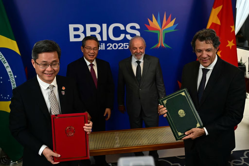 نیما حیدری – اندیشهٔ نو: به گزارش سات چاینا مورنینگ پُست، روز شنبه ۱۴ تیر، یک روز پیش از آغاز نشست سران کشورهای عضو بریکس در ریودوژانیرو، برزیل، لی چیانگ، نخستوزیر چین، با لولا داسیلوا، رئیسجمهور برزیل و میزبان این نشست، دیدار و گفتوگو کرد. لی چیانگ در این دیدار روابط رو به رشد کشورش با برزیل را «بهترین روابط تاریخی» خواند و ستود. این در حالی است که این دو عضو بنیادگذار گروه اقتصادهای نوظهور «بریکس» در عرصهٔ تجارت و «نظم جهانی» با رفتارهای دولت ترامپ در آمریکا مواجهاند.