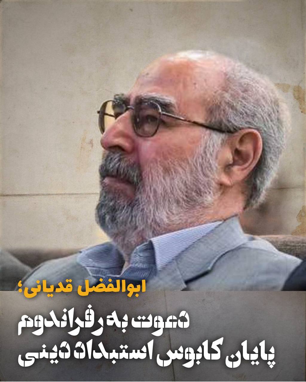 ▫️در هر حال کار درست آن است که علی خامنهای دست از این قدرت جهنمی که سر تا پا غیر مشروع و غیر قانونی و غاصبانه است بردارد و از پیشگاه ملت ایران طلب عفو کند، استعفا دهد و کنار رود تا عرصه برای یک حکومت مردمی که به اعتقاد من همانا نظام جمهوری دموکراتیک سکولار بر پایهی حقوق بشر است با برگزاری رفراندم فراهم شود.