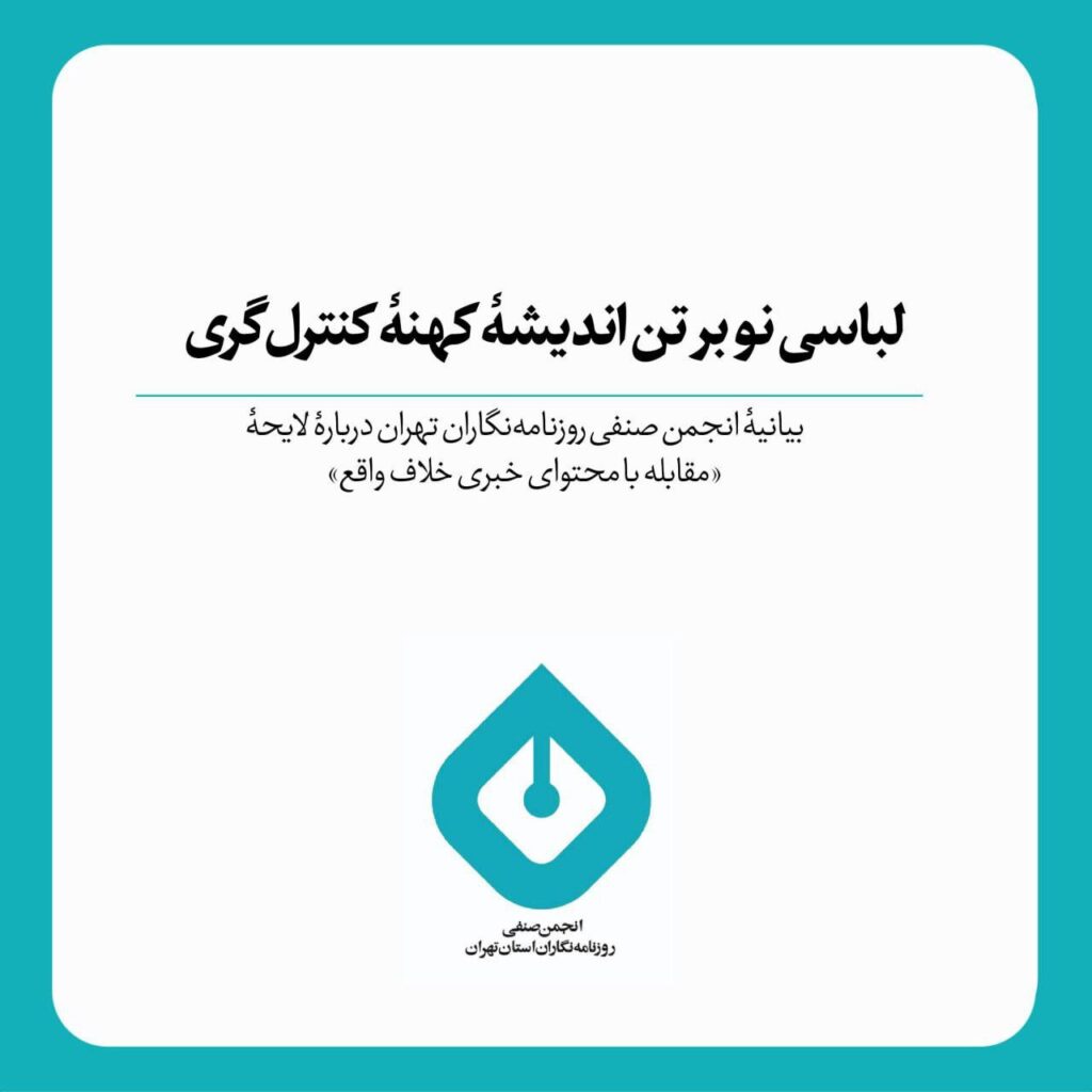 بیانیه انجمن صنفی روزنامهنگاران تهران دربارهٔ لایحه «مقابله با محتوای خبری خلاف واقع»