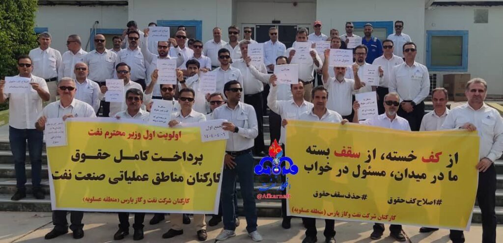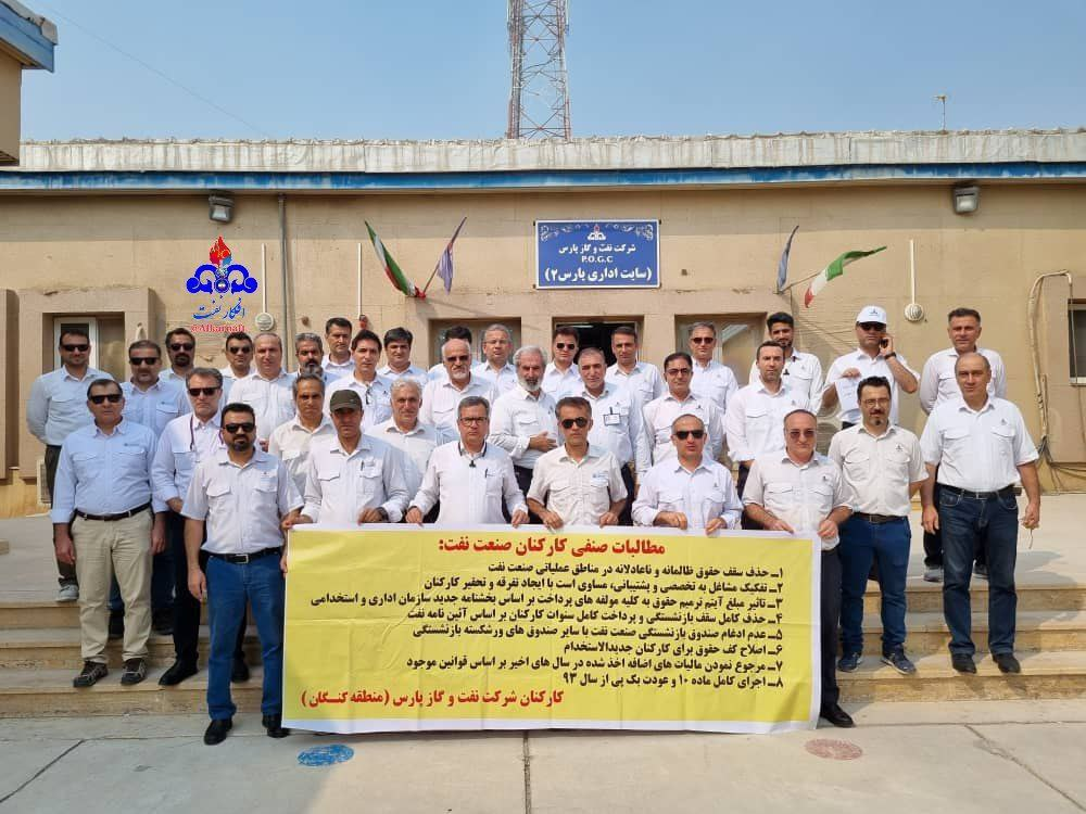 طبق گزارشهای منتشرشده در شبکههای اجتماعی، کارگران و کارکنان شرکت نفت روز دوشنبه ۶ مرداد ۱۴۰۴ در بسیاری از تأسیسات نفت و گاز جنوب کشور دست به تجمع اعتراضی زدند و خواهان رسیدگی به درخواستهای مزدی ومعیشتی و صنفی و بهبود شرایط کار شدند، از جمله، در شرکت نفت و گاز پارس کنگان (سایت ۲)، سکویهای چهلگانهٔ شرکت نفت و گاز پارس (POGC)، شرکت نفت و گاز پارس عسلویه (سایت ۱)، پالایشگاه گاز فجر جم، شرکت مجتمع گازی پارسجنوبی، شرکت مجتمع گازی پارسجنوبی- پالایشگاه دوم و ستاد، شرکت مجتمع گازی پارسجنوبی- پالایشگاه هفتم، شرکت مجتمع گازی پارسجنوبی- پالایشگاه دوازدهم، شرکت مجتمع گازی پارسجنوبی- پالایشگاه اول.