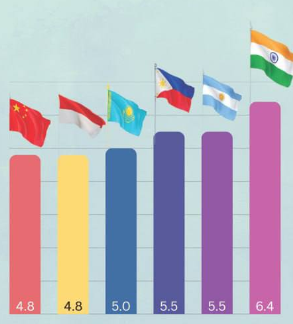 در صدر جدول رشد اقتصادی هند قرار دارد. طبق پیشبینیهای صندوق بینالمللی پول، هند در سالهای ۲۰۲۵ و ۲۰۲۶ رشد ۶٫۴ درصدی خواهد داشت که نتیجهٔ عوامل متعددی است.