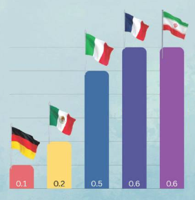 آلمان با رشد ۰٫۱درصدی در آخر جدول رتبهبندی رشد اقتصادی کشورهای جهان قرار گرفته است. مکزیک با ۰٫۲درصد، ایتالیا با ۰٫۵درصد، ایران و فرانسه با ۰٫۶درصد نیز در انتهای همین جدول جا گرفتهاند.