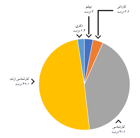 ۹۷درصد پاسخگویان مدرک دانشگاهی دارند. تقریباً ۴۲درصد مدرک کارشناسی و ۴۹درصد مدرک کارشناسی ارشد دارند.