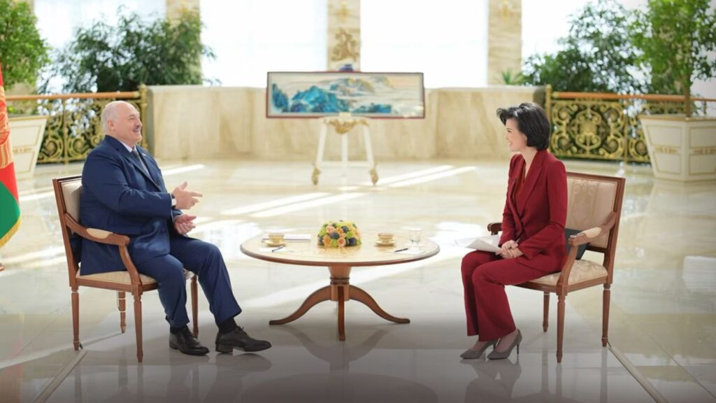 الکساندر کوکاشنکو، رئیسجمهور بلاروس، در مصاحبه با خبرنگار رادیو و تلویزیون مرکزی چین.