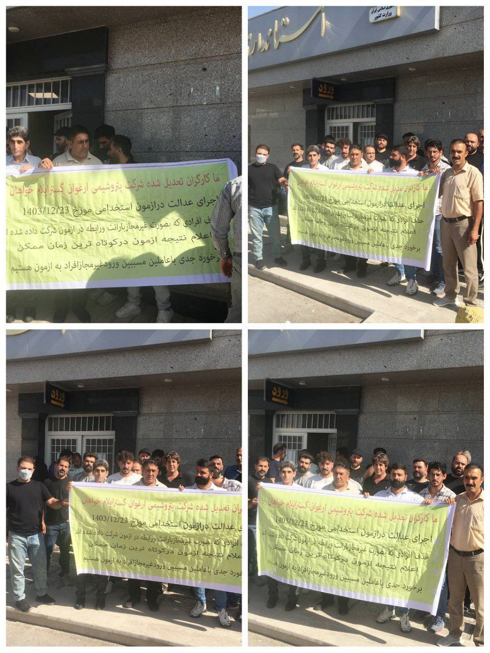 از صبح امروز، نیروهای تعدیلشده پتروشیمی ارغوانگستر مقابل استانداری ایلام تجمع کردهاند تا اعتراض خود را به آزمون استخدامی و تعدیلهای غیرمنصفانه نشان دهند و برای اعاده به کار فریاد بزنند.