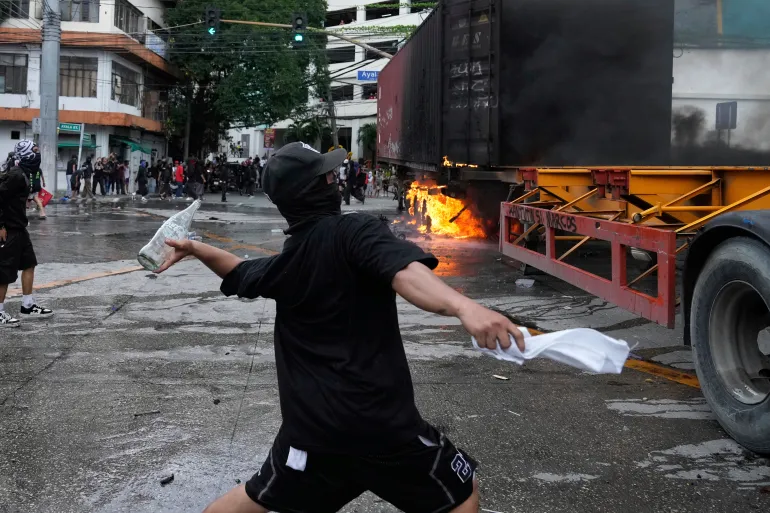 یورش پلیس به معترضانی در مانیل که قصد داشتند وارد کاخ ریاستجمهوری شوند. ۳۰ شهریور ۱۴۰۴ عکس از Aaron Favila/AP Photo