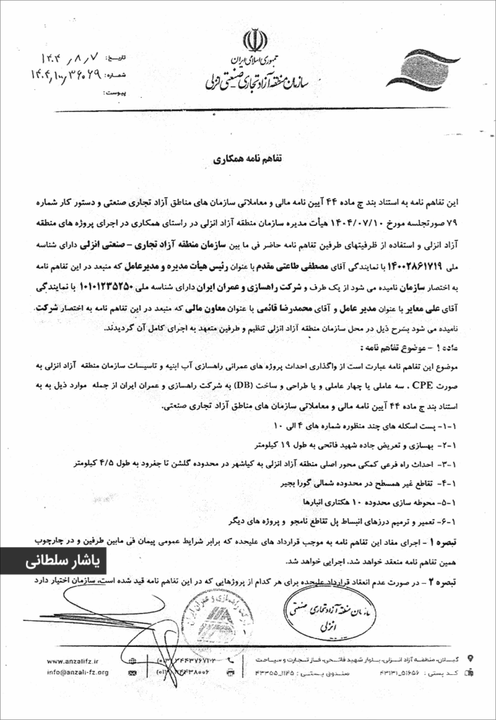 نگاهی به یکی از بندهای این قراردادها نشان میدهد که «شرکت راهسازی و عمران ایران» پس از امضای قرارداد با سازمان منطقهٔ آزاد انزلی به مدت ۲ سال تحت آن قرارداد حق فعالیت دارد و بهراحتی اکثر پروژه های منطقه را انجام میدهد. گفتنی است در صورتی که این تفاهمنامه حداقل منتج به یک قرارداد شود، مدت این تفاهمنامه تا آخرین قرارداد منعقده دارای اعتبار است!
