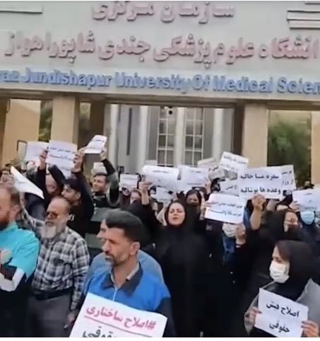 پرسنل پشتیبانی و بهداشت دانشگاه علوم پزشکی جندیشاپور اهواز دست به تجمع اعتراضی مقابل سازمان مرکزی این دانشگاه، زدند .