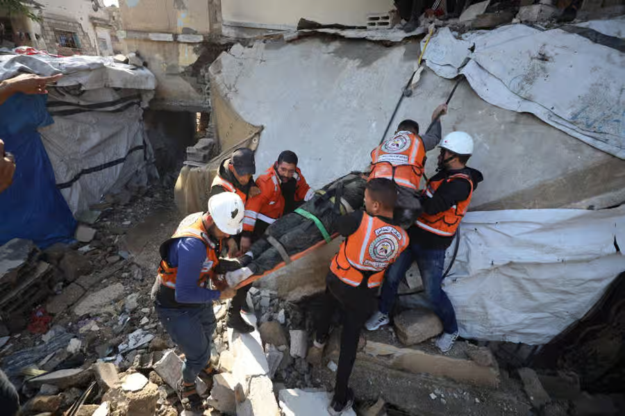 تیمهای پزشکی جسد فلسطینی کشتهشده را از زیر آوار بیرون میکشند ـ ۱۶ دسامبر ۲۰۲۵ ـ عکس از خبرگزاری فرانسه