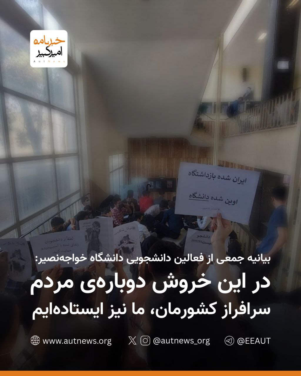 بیانیه جمعی از فعالان دانشجویی دانشگاه خواجه نصیر: در این خروش دوبارهٔ مردم سرافراز کشورمان، ما نیز ایستادهایم.