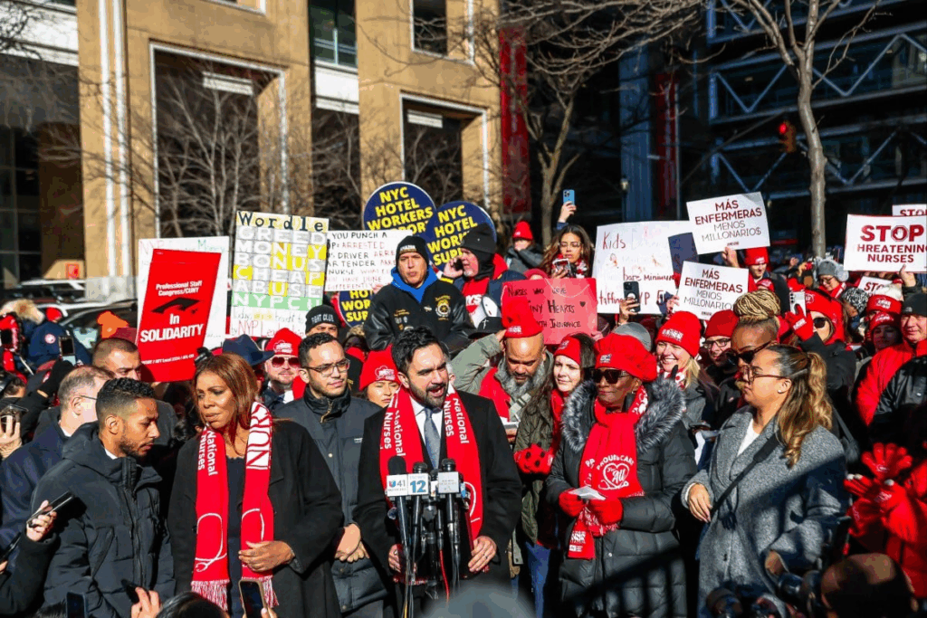 زهران ممدانی، شهردار جدید نیویورک، روز یکشنبه و پیش از آغاز اعتصاب در شبکهٔ اجتماعی ایکس نوشت: «هیچ فرد نیویورکی نباید نگران از دست دادن دسترسی به مراقبتهای پزشکی باشد و هیچ پرستاری نباید مجبور شود برای انجام کارهای نجاتبخش مردم حقوق کمتر، مزایای کمتر، یا کرامت کمتری بپذیرد.» او افزود: «پرستاران ما این شهر را در سختترین لحظهها زنده نگه داشتند. ارزش آنها قابل مذاکره نیست.»