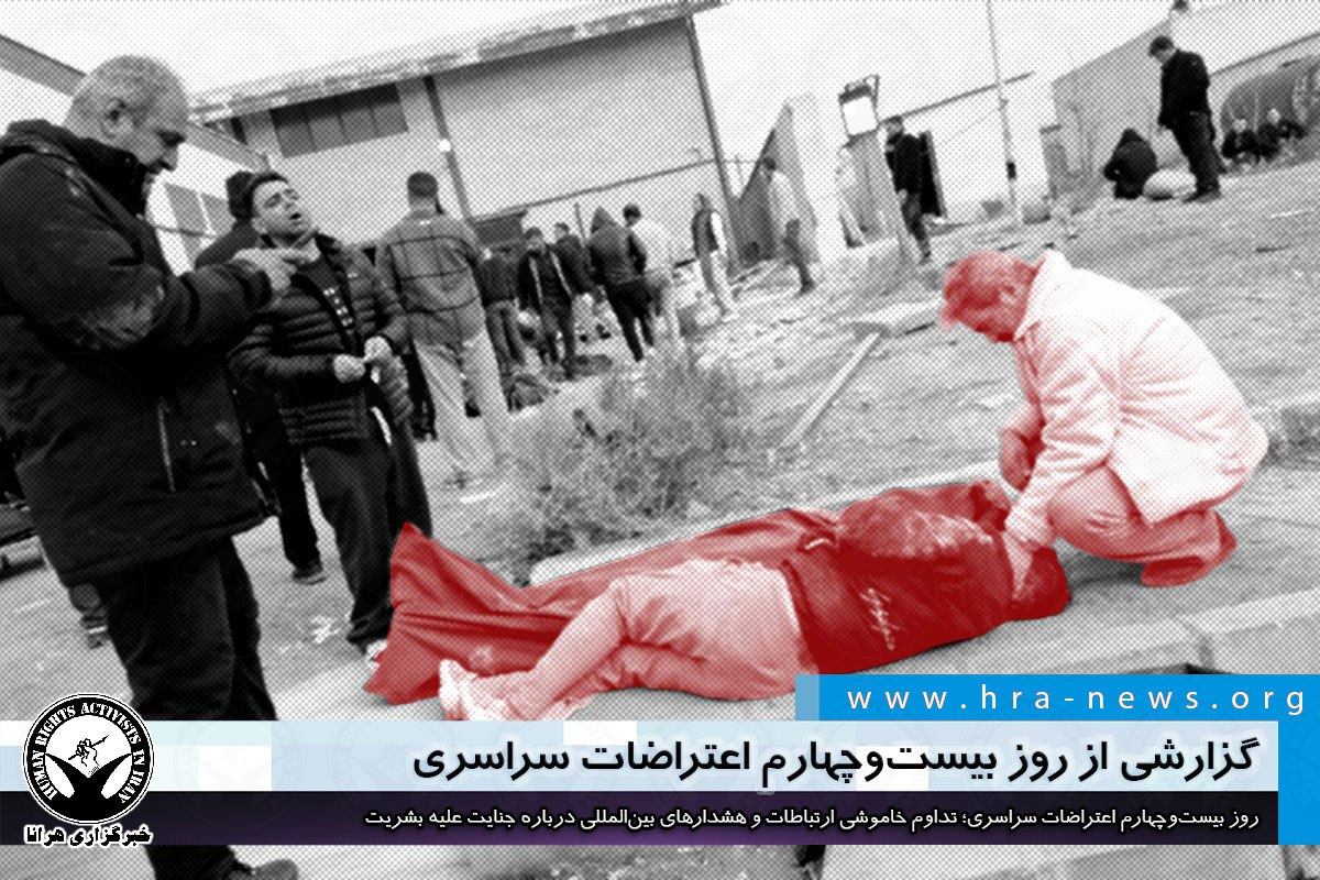 به گزاری خبرگزاری هرانا، ارگان خبری مجموعهٔ فعالان حقوق بشر در ایران، اعتراضهای سراسری در ایران در روز بیست و چهارم (سهشنبه ۳۰ دی) در شرایطی ادامه یافت که قطع گستردهٔ اینترنت و محدودیتهای شدید ارتباطی همچنان برقرار بود و همزمان فشارهای قضایی و امنیتی بر رسانهها، چهرههای عمومی، و شهروندان معترض افزایش یافت. در این روز اعلام برگزاری نشست اضطراری شورای حقوق بشر سازمان ملل متحد ابعاد تازهای از بحران حقوق بشری جاری در ایران را برجسته کرد.