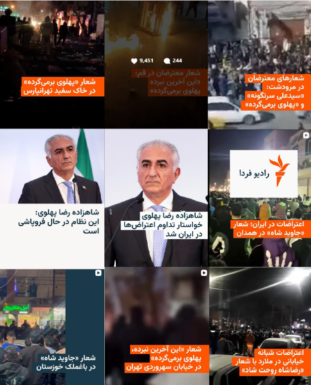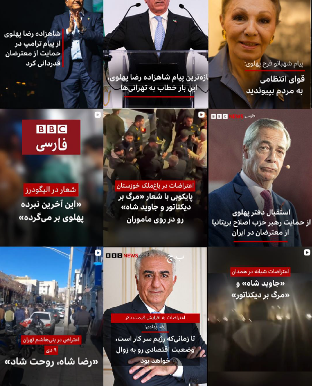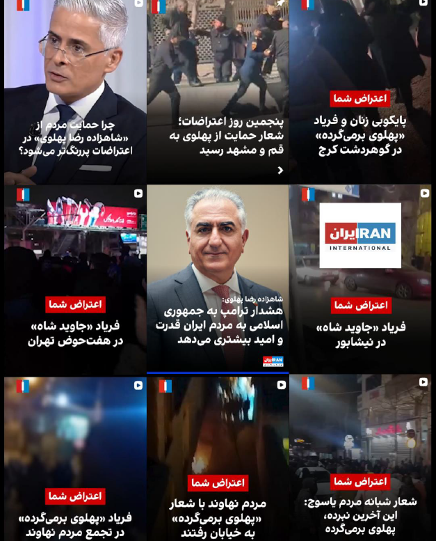 تصاویر خود گویای یک الگو هستند. در یک بازهٔ زمانی کوتاه، رفتاری کمسابقه اما منسجم در بخشی از رسانههای فارسیزبان قابل مشاهده است، رفتاری که دیگر نمیتوان آن را به انتخابهای موردی، خطاهای تحریری، یا تصادف خبری فروکاست. آنچه در این مجموعه دیده میشود نه صرفاً «پوشش اعتراضها»، بلکه نشانههای یک آرایش رسانهیی هماهنگ است، آرایشی که در آن رسانه از موقعیت ناظر فاصله میگیرد و در نقش پیشران یک روایت سیاسی مشخص- یک ستاد عملیاتی– عمل میکند.