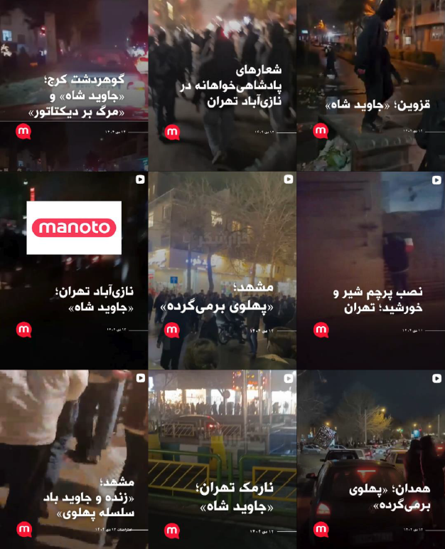 در این تصاویر یک موتیف ثابت با دقتی وسواسی تکرار میشود: هر جا تجمعی هست، هر جا اعتراضی شکل میگیرد، هر جا خشمی بروز میکند، بلافاصله نام و تصویر پهلوی به آن سنجاق میشود. این لحظه نقطهٔ گذار از خبر به تبلیغ است. رسانه دیگر نمیپرسد «چه اتفاقی افتاده؟»، بلکه از پیش میداند «این اتفاق به نفع چه روایتی باید معنا شود». پرسشهای پایهیی هر گزارش خبری- ترکیب معترضان، دلایل اعتراض، تنوع مطالبات- جایشان را به پرسشی جهتدار میدهند: این اعتراض چگونه باید خوانده شود؟ و پاسخ پیشاپیش آماده است.