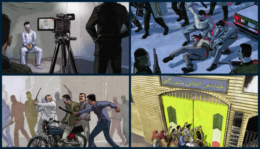 دیدهبان حقوق بشر نتیجهگیری کرده است که استفاده از تصاویر دوربینهای مداربسته، پهپادها و فناوریهای نظارتی برای شناسایی معترضان، نشاندهنده یک کارزار سازمانیافته برای ایجاد رعب و خاموشکردن اعتراضات سراسری است.