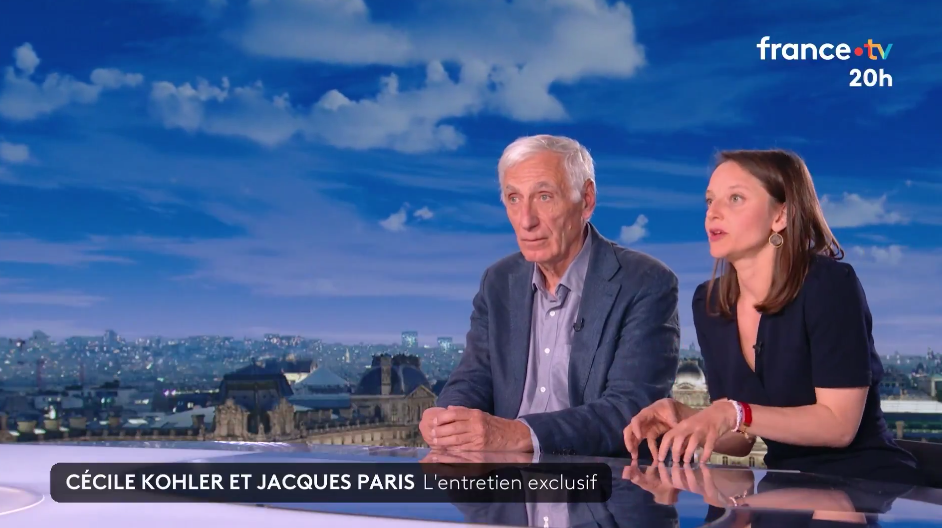 سسیل کوهلر (سمت راست) و ژاک پاریس، زندانیان آزادشدهٔ فرانسوی در مصاحبه با یک کانال تلویزیونی فرانسه (۱۵ آوریل ۲۰۲۵).