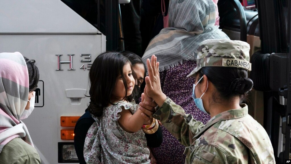 عکسی که ارتش آمریکا منتشر کرده و افغانها را در اردوگاه السیلیه در قطر در تابستان ۲۰۲۱ (۱۳۹۰) نشان میدهد. عکس از گروهبان جیمی بیکر/ارتش ایالات متحد آمریکا، از طریق گتی ایمیجز.